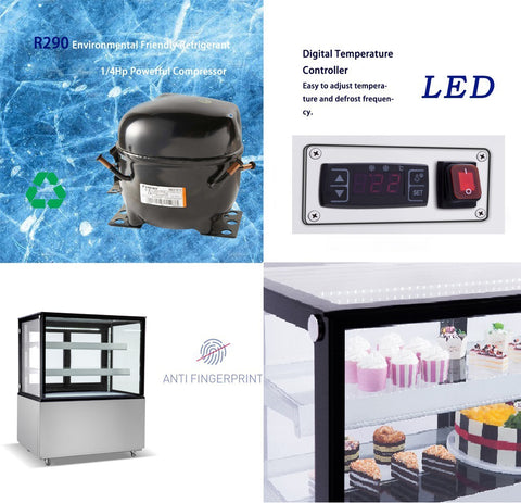 Display your signature cakes, pies, and pastries with ease using this 36" curved glass stainless steel refrigerated bakery display case! With its smooth, curved glass design, this contemporary case keeps contents sanitary while providing maximum visibility to entice your customers. Plus, this unit uses eco-friendly R290 refrigerant, making it an environmentally-responsible choice for your business.